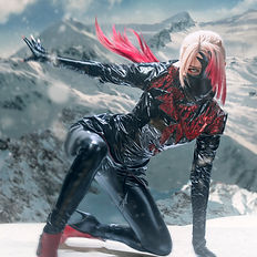 Sesión fotográfica de cosplay con enfoque artístico y narrativo. Incluye fotomontaje avanzado, integrando fondos, escenarios y elementos externos para crear composiciones complejas que lleven al personaje a un entorno visual completamente construido.